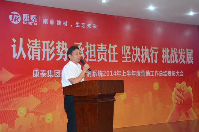 ? ? ? 7月11日8:20,母公司營銷系統(tǒng)全員個個精神飽滿、神采奕奕,在高亢激昂的《康泰之歌》中開啟全天總結(jié)匯報(bào)會議,成都、四川、重慶、云南、西安商務(wù)部、網(wǎng)絡(luò)部、市政部、家裝事業(yè)部、型材事業(yè)部、大客戶部十個團(tuán)隊(duì),分別就2014年上半年度工作總結(jié)、下半年度工作規(guī)劃作出匯報(bào)。最后由營銷中心何朝暉總監(jiān)作營銷中心上半年度總結(jié)、下半年度形勢分析和工作規(guī)劃部署,何總首先對各團(tuán)隊(duì)負(fù)責(zé)人的工作匯報(bào)和規(guī)劃作一對一的詳細(xì)點(diǎn)評和指導(dǎo),并在總結(jié)中說道:“上半年?duì)I銷中心全員團(tuán)結(jié)一致、全力以赴,完成了上半年度的目標(biāo),可喜可賀。但要清醒看到房地產(chǎn)市場重大拐點(diǎn)的嚴(yán)峻形勢,完成下半年銷量指標(biāo)充滿挑戰(zhàn),要求營銷系統(tǒng)全員統(tǒng)一思想,堅(jiān)定以認(rèn)清形勢、承擔(dān)責(zé)任、堅(jiān)決執(zhí)行、挑戰(zhàn)發(fā)展的思路,將每項(xiàng)工作落到實(shí)處,奮力拼搏爭取圓滿完成下半年經(jīng)營指標(biāo)” 。