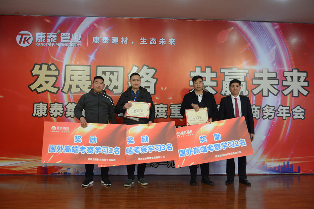 在結(jié)束完所有議程后,18時(shí)許,會(huì)議在熱烈的掌聲中圓滿閉幕。歲序更替,華章日新。2019年,對于康泰集團(tuán)來說是充滿期待和希望的一年??堤┘瘓F(tuán)致力于做“中國塑膠管道工程集采第一供應(yīng)商”的發(fā)展定位,以“為城市建設(shè)集成供應(yīng)生態(tài)管道系統(tǒng),管通全球”的企業(yè)使命,打造實(shí)現(xiàn)“百億康泰、百年康泰,中國民營企業(yè)500強(qiáng)”,全面構(gòu)建實(shí)現(xiàn)品質(zhì)康泰、智能康泰、生態(tài)康泰、康泰+跨越發(fā)展。讓我們攜起手來,共同開創(chuàng)康泰集團(tuán)更加美好的明天!