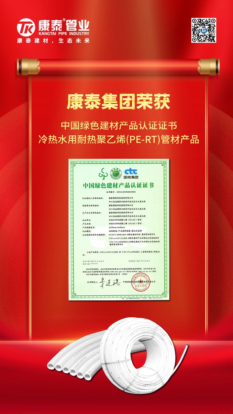 康泰塑膠:造綠色產(chǎn)品,享健康生活2022/10/11 6905近日,康泰塑膠的給水用聚乙烯(PE)管材、管件產(chǎn)品,燃?xì)庥寐竦鼐垡蚁?...read more -